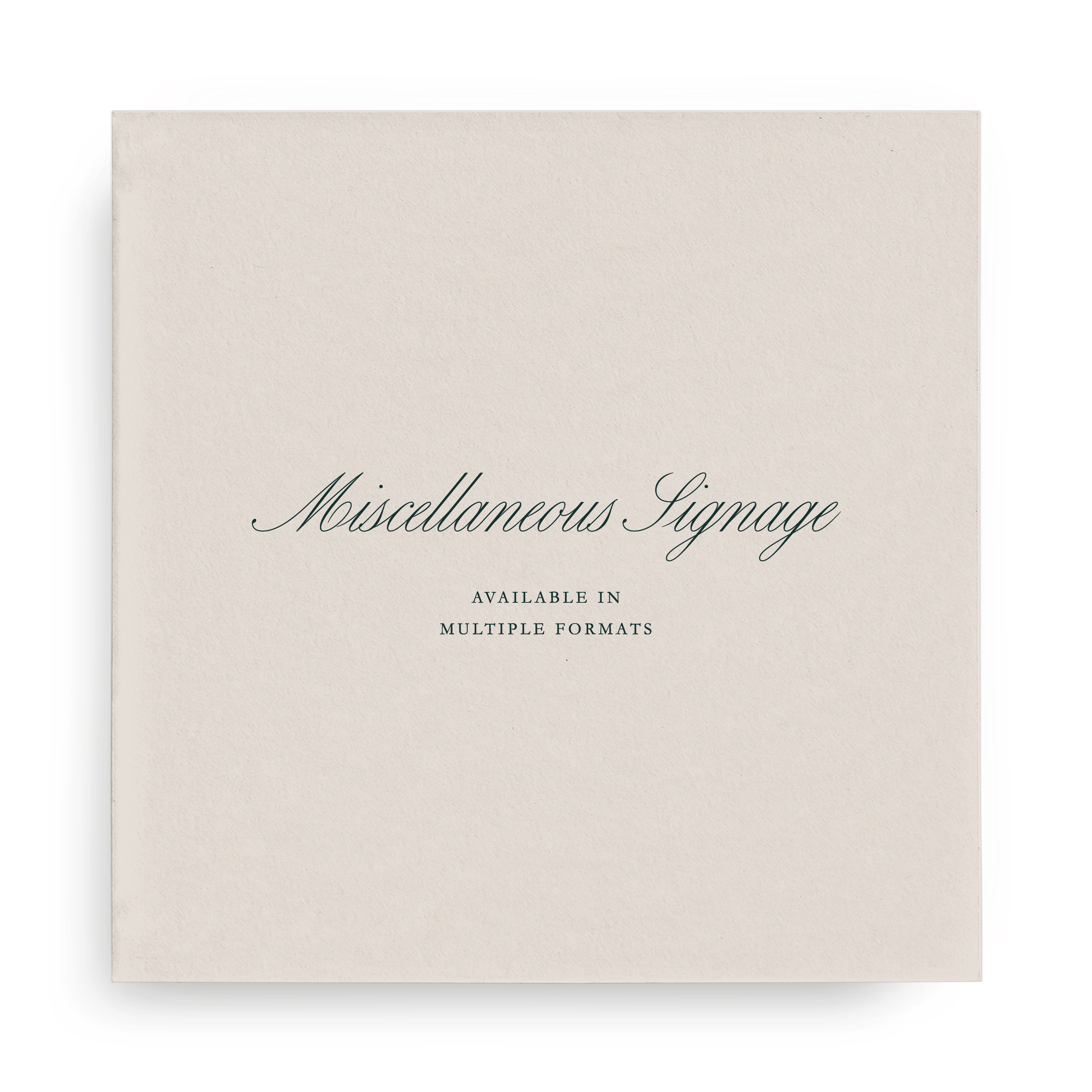 Volume Discount: For Miscellaneous Signage orders of $200+, contact us directly with your complete signage wording document to receive 20% off—we'll handle your order personally and edit your existing order or send a custom invoice.