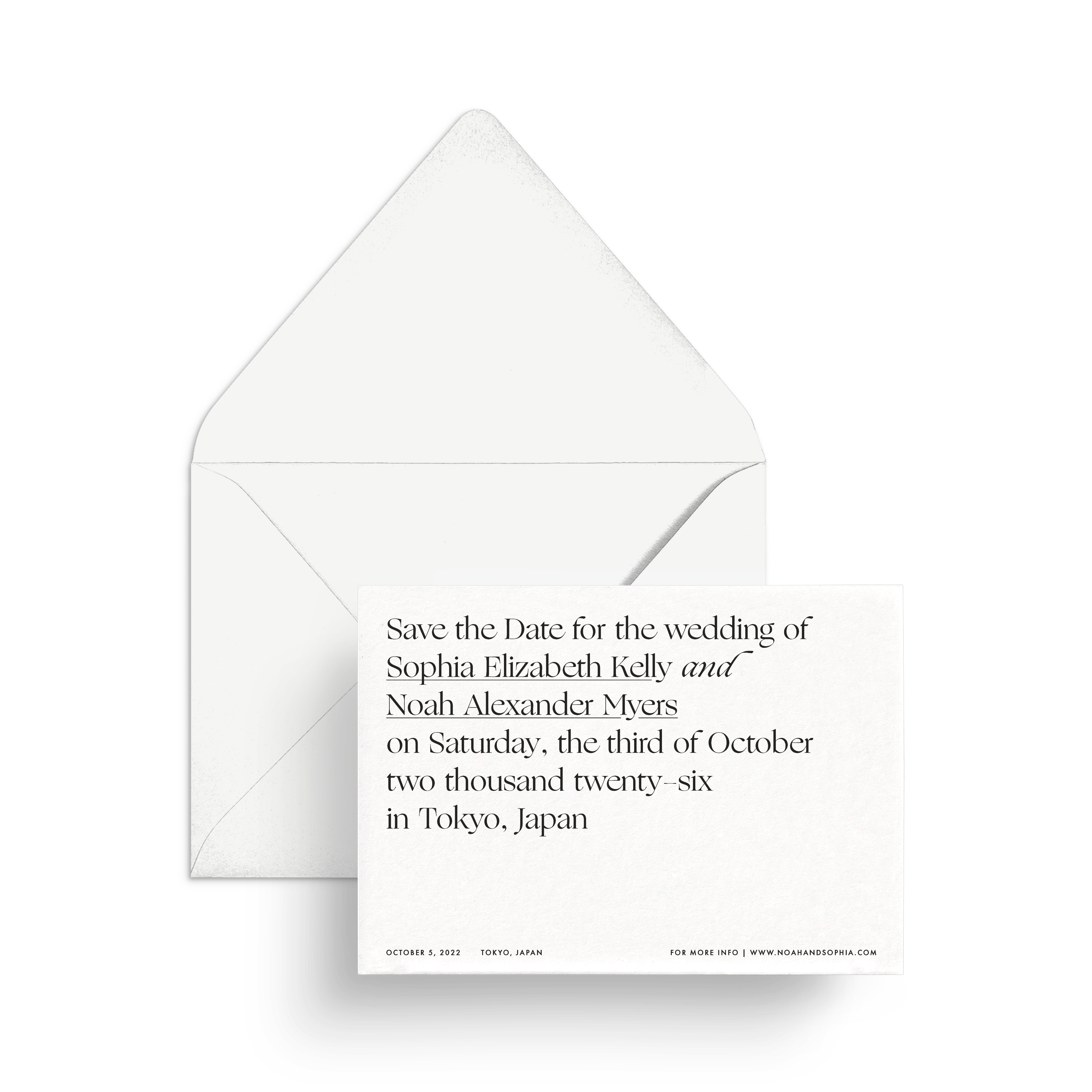 - Save-the-Date Envelope Digital Return + Guest Addressing (optional)