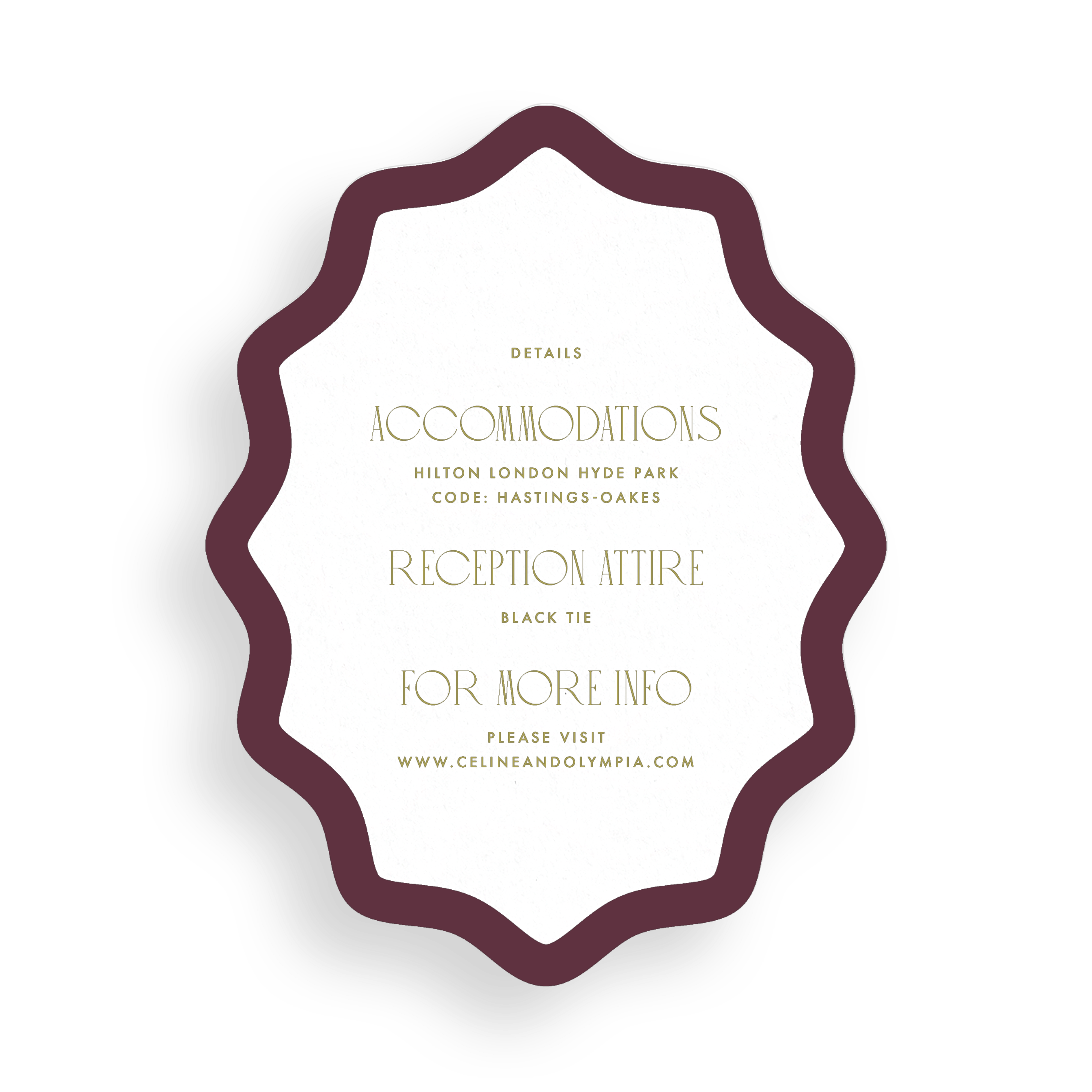 To convey the finer points of your celebration—from digital QR codes to notes on transportation—our thoughtfully composed enclosure cards ensure every guest feels anticipated and informed. Our designers will then arrange your provided text, introducing subtle variations in scale and typography for a dynamic yet harmonious effect. Refine your suite further with elevated options like double-thick papers and tactile letterpress printing, all available within the customization form.