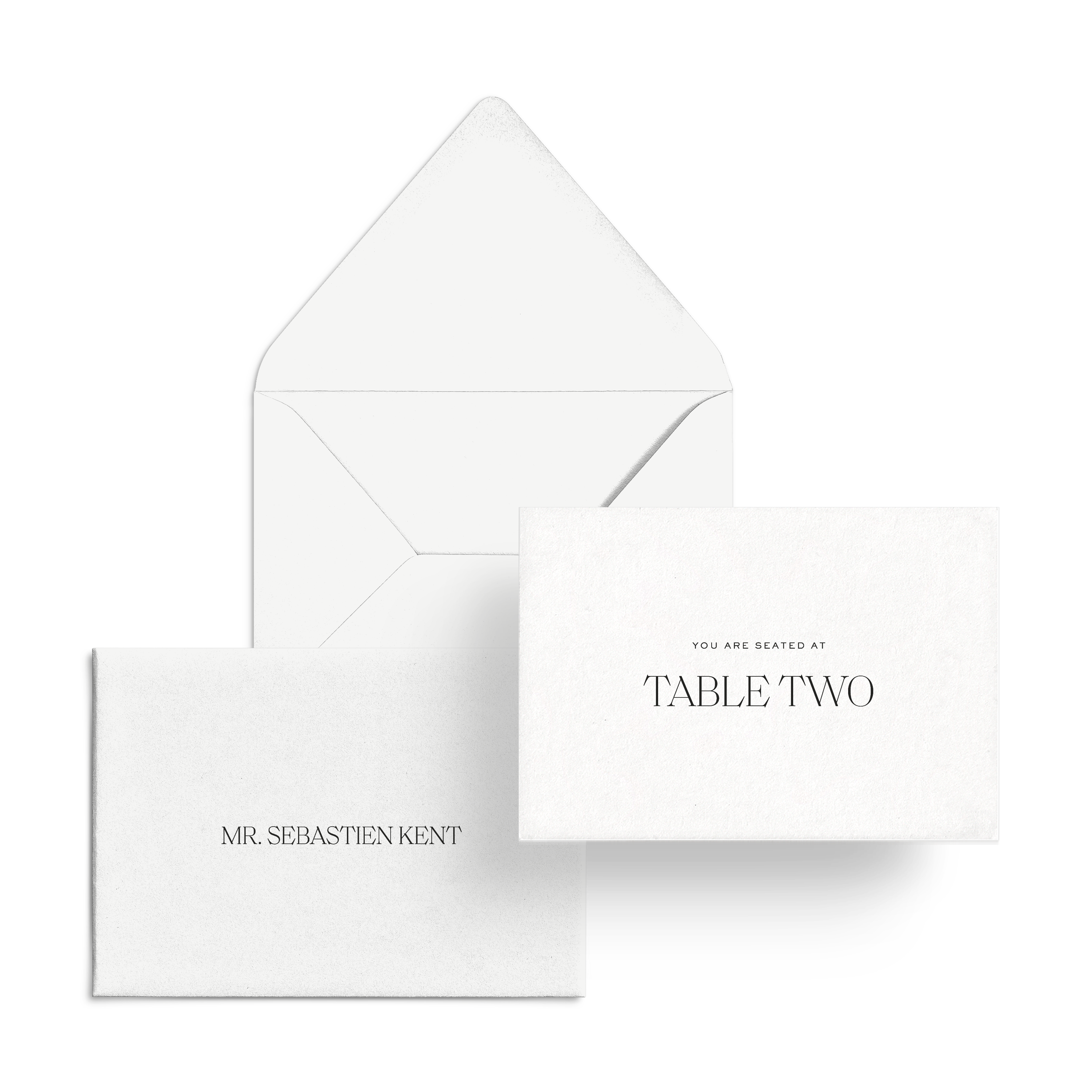 Our escort card system separates guest names from table assignments, giving you the freedom to adjust seating until the very last moment. Guest names live on elegant envelopes, while table numbers stay safely inside on removable cards—perfect for couples who know that even the best-laid plans sometimes need tweaking.