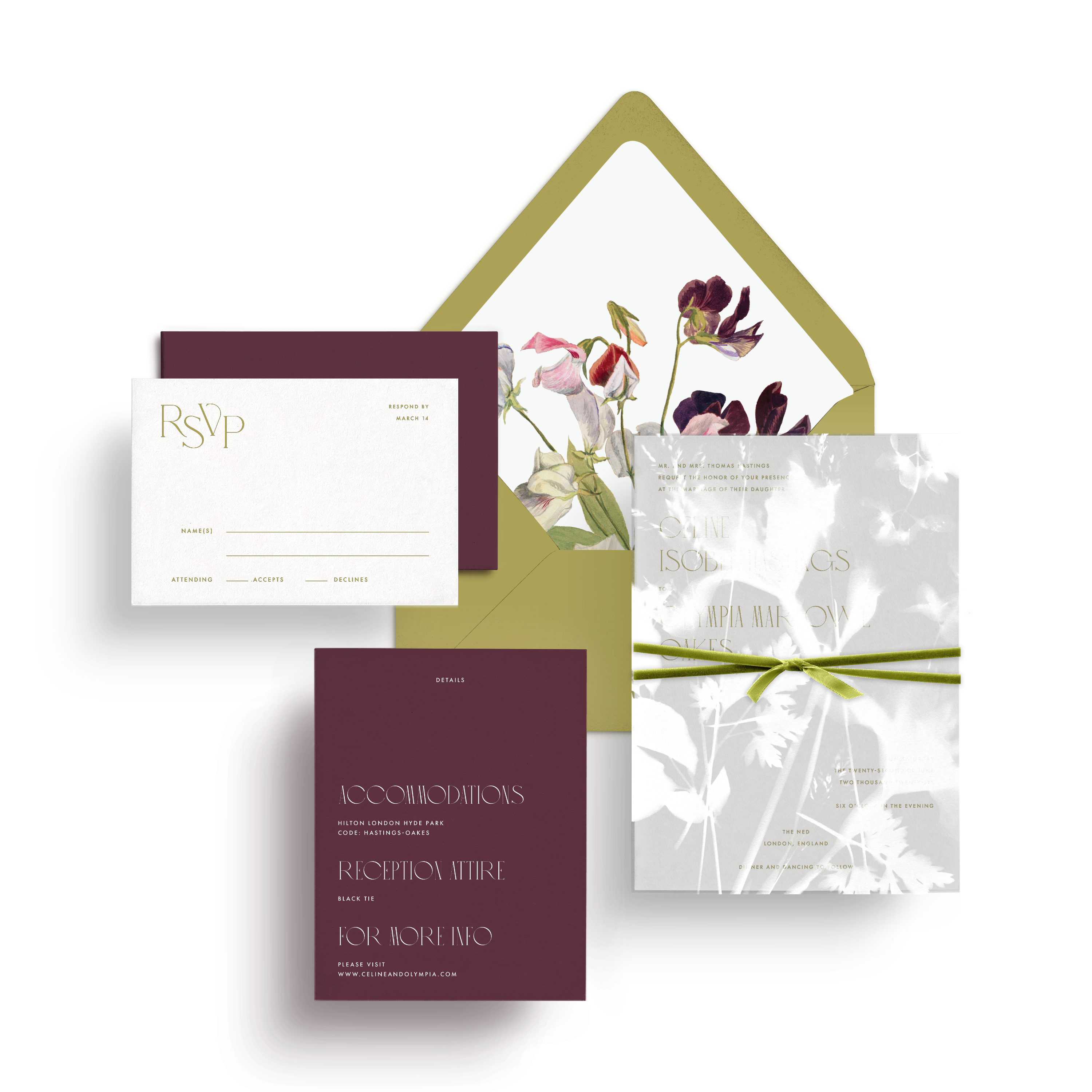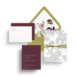 Our Tivoli Collection in burgundy, chartreuse, and cream. A palette that shouldn't work but absolutely does—like discovering the perfect wine pairing you'd never think to try. The chartreuse keeps things from feeling too serious, the burgundy prevents it from floating away, and the cream gives everything room to breathe. Sophisticated without trying too hard. For couples who trust their instincts over the rulebook.