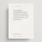 Design Guidance: Concerned about how your 17-letter surname will look? Wondering if your venue's full name will fit? Email us before ordering. We typeset every piece to maintain aesthetic harmony—we'll guide you toward the collections and fonts that work best with your specific needs.